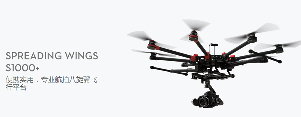 大疆禪思系列云臺是為專業影視攝影,廣告航拍而定制的高穩定性云臺系統,具有高穩定性。S1000+ 可以兼容禪思全系列云臺。全新的懸掛設計以及電機減震設計,大大降低云臺系統的震動,更利于拍攝作業。新電池托盤位置設計,方便用戶安裝電池,電池更加穩固。云臺安裝架下移設計,集合系統標配收放起落架,給鏡頭以更廣闊的拍攝視角。