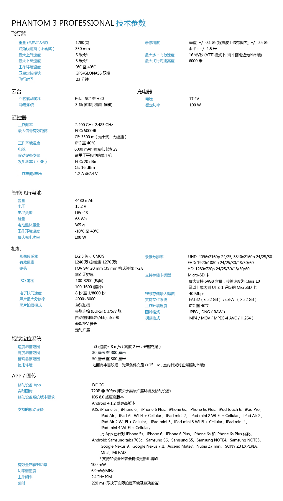 每一個電機均采用先進的制造工藝,動力更為強勁。無刷電機搭配先進的智能電調 (ESC),讓 Phantom 3 在空中的響應更加敏捷。 動力強勁的電機讓Phantom 3可隨時加速或急停、快速上升或下降。DJI獨特的空氣制動系統保證在放開搖桿時,飛機可自動定點懸停。高精度自緊螺旋槳性能卓越,能在激烈的飛行中保持穩固。